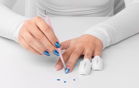 Apply a thin coat of magnetic gel polish. Cure fully using the gelmoment LED lamp of your choice.